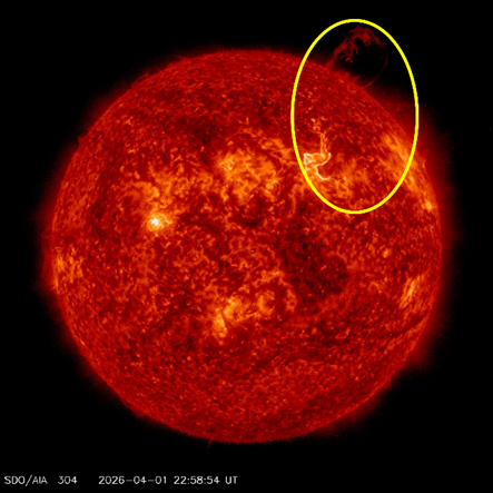 图2 2026年4月1日的日冕物质抛射(SDO卫星,世界时)