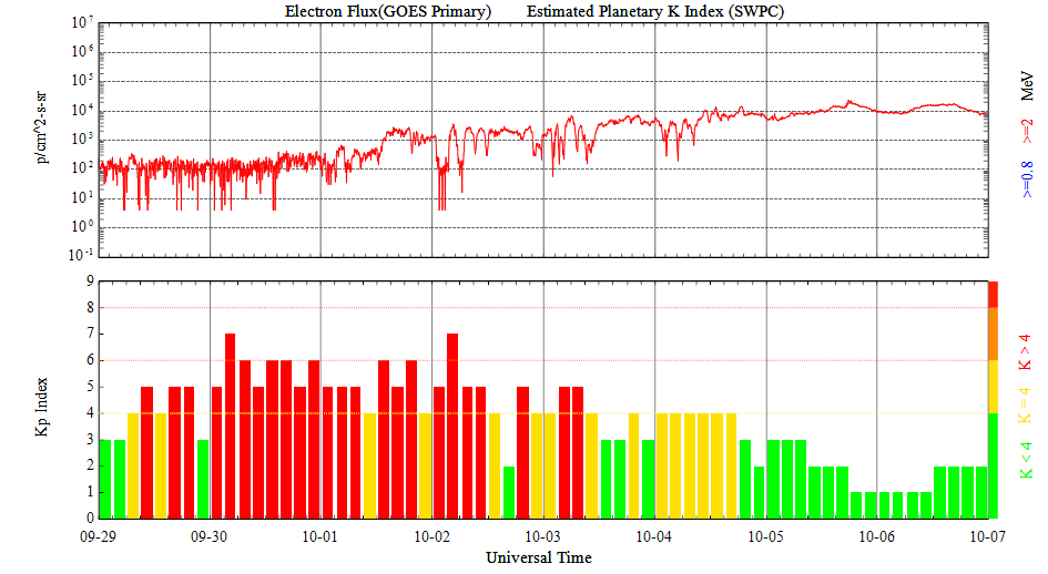 图1 2025年9月29日-10月6日地磁活动及同步轨道>2Mev高能电子通量观测