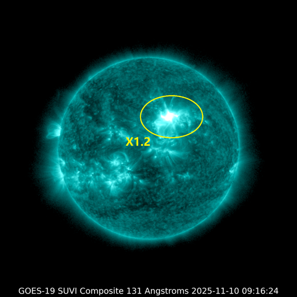 图3 2025年11月10日GOES卫星监测的X1.2级耀斑爆发(世界时)