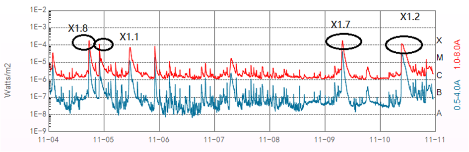 图1 2025年11月4-10日GOES卫星监测的X射线流量(世界时)